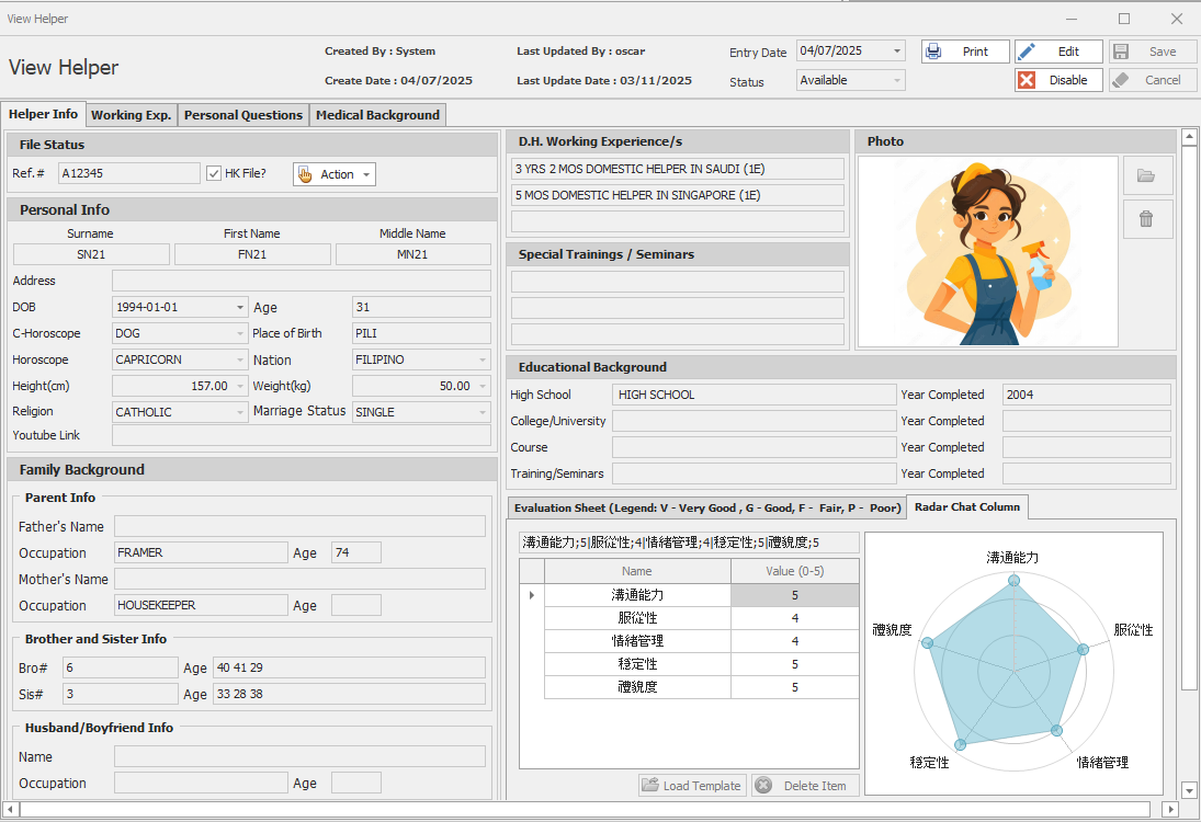 外傭資料管理